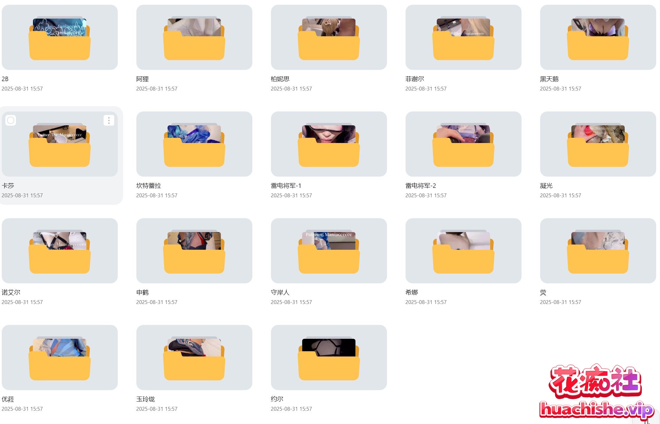 二次元COS约啪大师 Maniacccccc 原档4K合集作品,除了他自己的水印无其他垃圾水印,更新到这个博主8月30号新发的,全部按照名称做了详细的分类,见下图